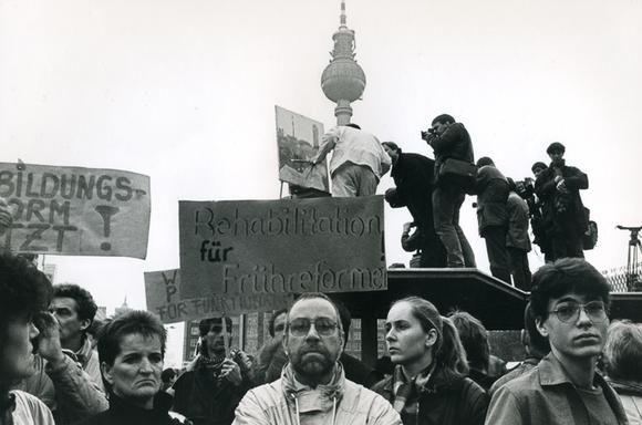 Demonstranten bei der Alexanderplatz-Demonstration, der "größte[n] nicht staatlich gelenkte[n] Demonstration in der Geschichte der DDR" (