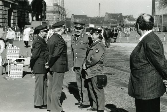 East and West German police chatting in front of the Reichstag