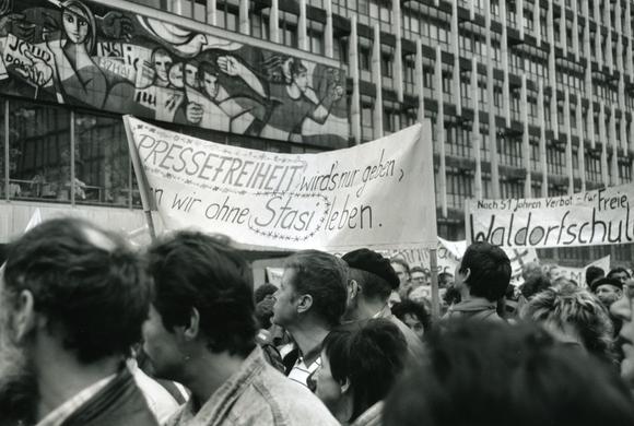 Pressefreiheit wird's nur geben, / [we]nn wir ohne Stasi leben.