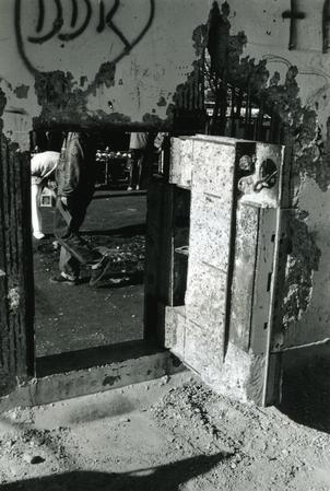 Von der Ostseite fotografierte Tür in der Mauer. "Solche Teile mit tresorartiger Schlupftür soll es Historikern zufolge rings um Berlin nur sechs oder acht Mal gegeben haben." (