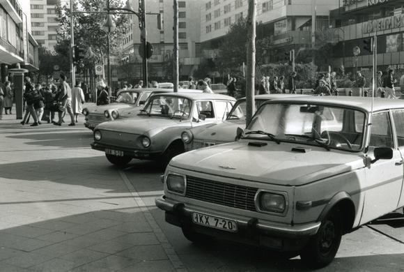 East German cars parked in front of the Europa Center (shopping center)