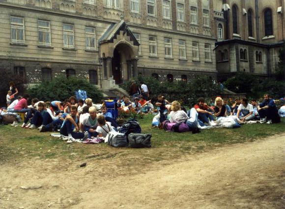Hungary: GDR refugees camping outside Zugliget church [6/12]