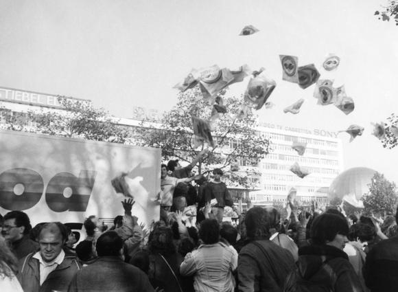 "Large lorries were parked in front of the Europa Centre, laden with chocolate and German Lebkuchen which was being handed out to delighted GDR citizens. When all the chocolate had gone, people started fighting over the plastic carrier bags - perfect advertising!"