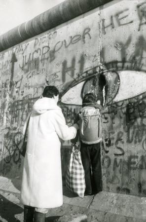 "Being able to look through the Wall was important for people living in both parts of Berlin. But it was of course especially significant for the mother and child from the East. A little further along, people were working on demolishing the construction with a hammer and chisel."