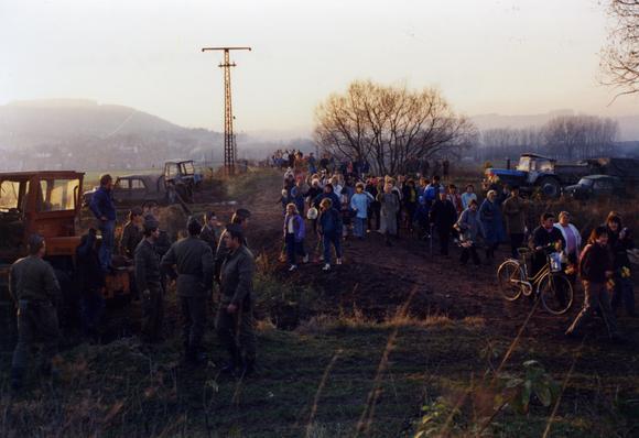 People cross the opened inner German border between Heldra and Großburschla (which was virtually surrounded by Hessian territory)