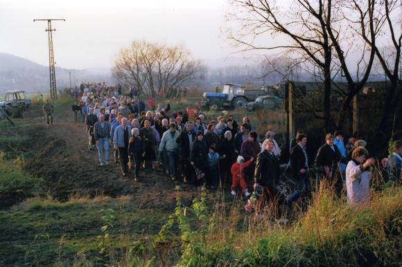 People cross the opened inner German border between the towns of Heldra and Großburschla, which was virtually surrounded by Hessian territory