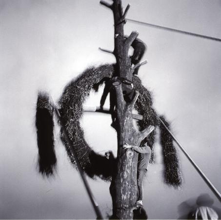 The erected "queste" (tree trunk with large wreath) is the focus of the "Questenfest", a Pentecost celebration on the Southern border of the Harz mountain range