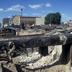 Wachtturm im Grenzstreifen im Stadtbezirk Treptow (heute Treptow-Köpenick), links die teilweise abgebaute Mauer