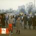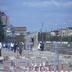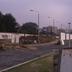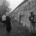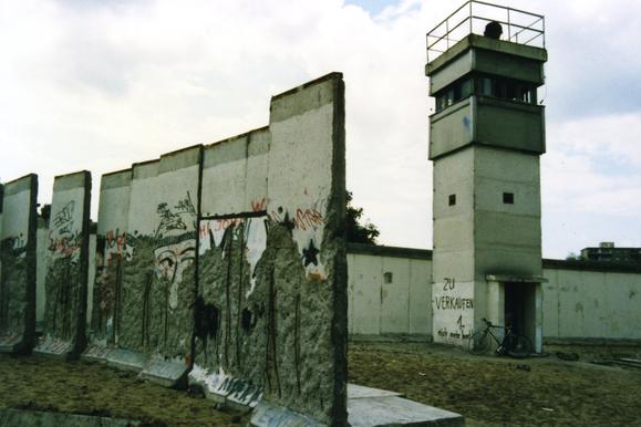 Besprühter Wachtturm im teilweise geräumten Grenzstreifen
