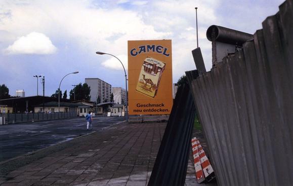 Werbeplakat am Grenzübergang Heinrich-Heine-Straße, während der Zeit der Mauer einer der sieben Straßenübergänge zwischen Ost- und West-Berlin (zwischen sowjetischem und US-amerikanischem Sektor), an dem der Waren- und Postverkehr zwischen den Stadthälften kontrolliert wurde