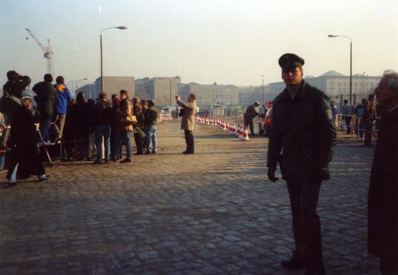 Photographers and pedestrians at the new Potsdamer Platz border crossing, installed on the 12 November 1989