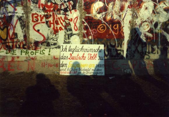 Ich beglückwünsche / das Deutsche Volk zu / den Ereignissen am 9 Nov. 89 / und bitte um Solidarität mit dem / Rumänischen Volk gegen das Terrorregime