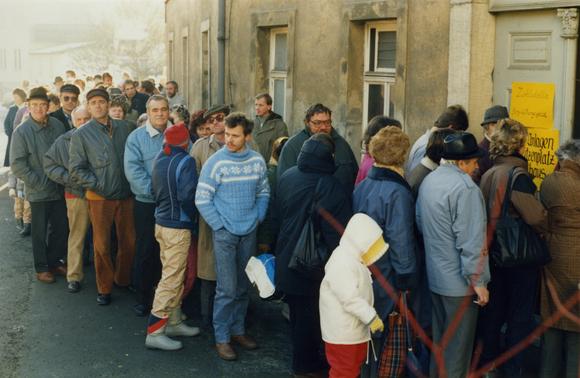 Waiting in line for Begrüßungsgeld ("welcome money")