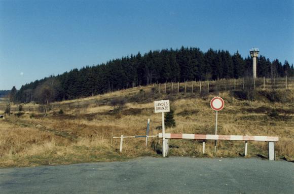 Wachtturm am Grenzübergang zwischen Spechtsbrunn, einem Ortsteil der thüringischen Gemeinde Oberland am Rennsteig, und dem bayerischen Tettau, der am 24. November 1989 eingerichtet wurde