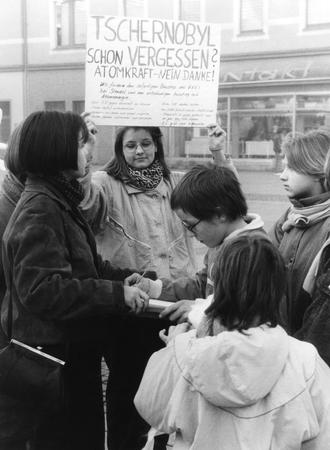 Exhibition theme: Protest and Flight: Protest sign: "Have you already forgotten Chernobyl?" [23/56]