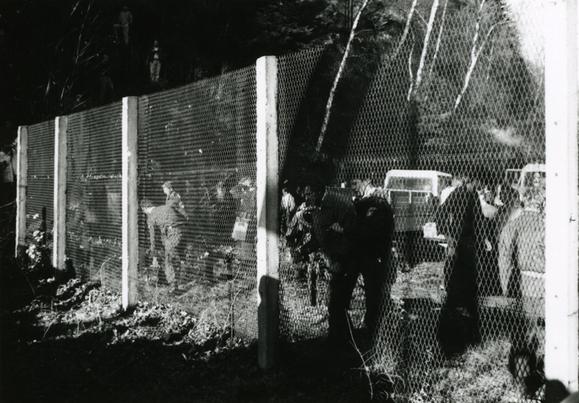 Abbauarbeiten zur Öffnung des Grenzübergangs Falkenstein zwischen Lauenstein, einem Stadtteil der bayerischen Stadt Ludwigsstadt, und der thüringischen Gemeinde Probstzella. Die Öffnung des Grenzübergangs fand am 12. November 1989 für Fußgänger und am 13. November 1989 für den Straßenverkehr statt. Die Aufnahme entstand in der Nähe des Felsens Falkenstein, der dem Grenzübergang den Namen gibt.
