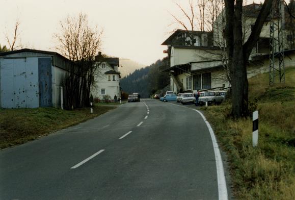 Street leading to the former inner German border between Lauenstein, a neighborhood of Ludwigsstadt (Bavaria) and the town of Probstzella (Thuringia). Beginning in the counties Kronach (Bavaria) and Sonneberg and Saalfeld (Thuringia), the border was opened on 11 November 1989, and for pedestrians and auto traffic on 12 and 13 November 1989, respectively. The photo was taken near Falkenstein cliff, after which the border crossing was named.
