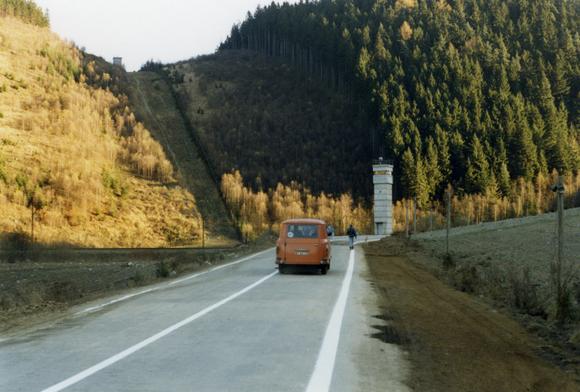 A Barkas van between Lauenstein, a neighborhood of Ludwigsstadt (Bavaria) and the town of Probstzella (Thuringia). The border was opened on 11 November 1989, beginning with the counties Kronach (Bavaria), Sonneberg and Saalfeld (Thuringia).