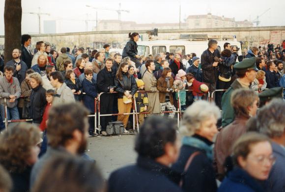 Masses gathered at the border opening at Potsdamer Platz on 12 November 1989 at the Western side of the Wall