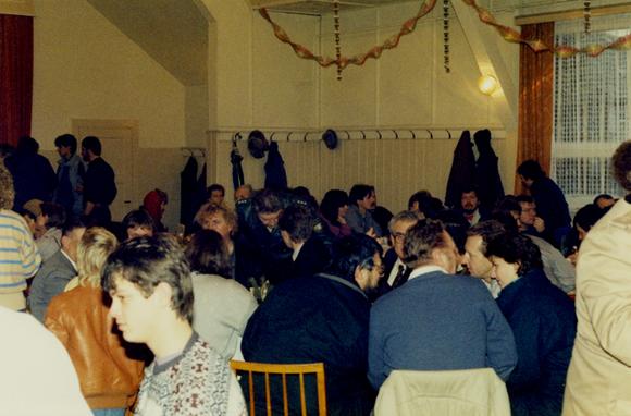 Im Kulturhaus Brennersgrün am Tag der Grenzöffnung zwischen dem bayerischen Tschirn und Brennersgrün, einem Ortsteil des thüringischen Lehesten, am 23. Dezember 1989