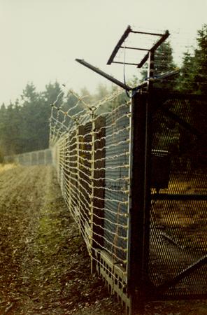 A border gate at the entrance to Brennersgrün, a part of the town Lehesten (Thuringia), on the day of the opening of the border crossing between Brennersgrün and Tschrin (Bavaria)