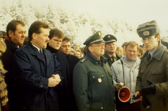 At the opening of the border crossing between Lichtenhain, a part of the town of Gräfenthal (Thuringia) and Ebersdorf (Bavaria) on 6 January 1990