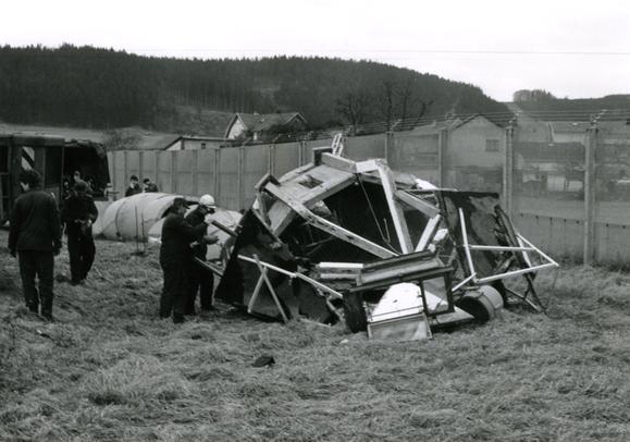 The deconstruction of a watchtower in Heinersdorf, a part of the town of Judenbach (Thuringia), which lay in a prohibited area during the German separation, and at whose southern border a concrete wall similar to the Berlin Wall stood. A new border crossing was installed between Heinersdorf and Welitsch (Bavaria) on 19 November 1989.