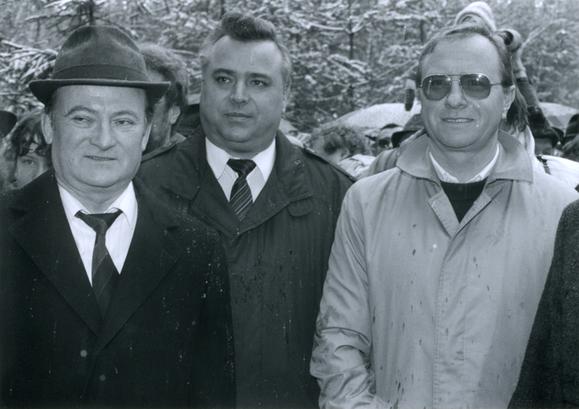 Member of the German Bundestag Otto Regensburger and other community leaders at the opening of the border crossing between Rotheul, a part of the town of Neuhaus-Schierschnitz (Thuringia) and Bächlein (Bavaria) on 31 March 1990