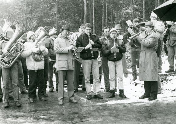 A wind ensemble between Bächlein (Kronach) and Rotheul (Sonneberg); the inner German border was opened on 11 November 1989 beginning with Kronach (Bavaria) and Sonneberg and Saalfeld (Thuringia). On 31 March 1990, the border between Rotheul, a part of Neuhaus-Schierschnitz (Thuringia) and Bächlein (Bavaria) was officially opened.