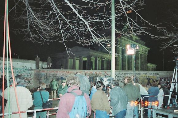 Abbau erster Mauersegmente für den neuen Grenzübergang Brandenburger Tor, der am 22. Dezember 1989 feierlich eröffnet wurde. Zur Grenzöffnung durch den damaligen Bundeskanzler Helmut Kohl und den Vorsitzenden des DDR-Ministerrates Hans Modrow erschienen hunderte Kamerateams und mehr als 100.000 Menschen.