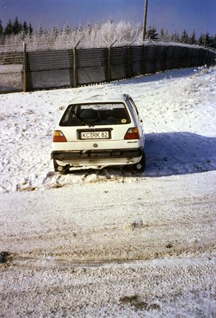 Car accident at the newly opened GDR border, Lichtentanne, January 6, 1990