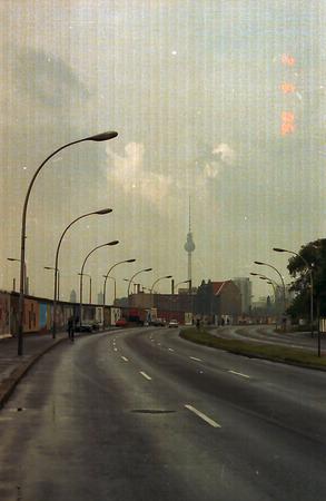 View towards the television tower at the 1.3 km long East Side Gallery in Berlin-Friedrichshain