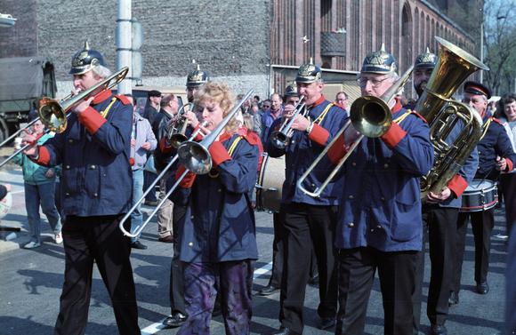 Memories of the fall of the Wall in Berlin Wilhelmsruh, 7 April 1990: Brass band at the opening of Kopenhagener Straße border crossing [14/17]
