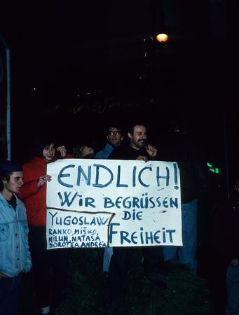 Endlich! / Wir begrüssen / die / Freiheit / Yugoslaw. / Ranko, Misko, / Milun, Natasa, / Dorotea, Andrea