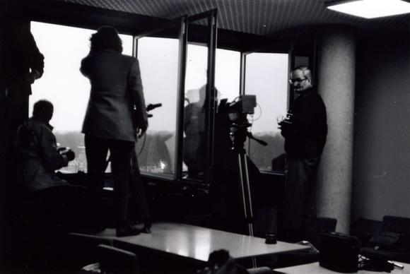 Camera crew at the official opening of the new border crossing at Brandenburg Gate. Over 100,000 people and hundreds of camera teams attended the ceremony, presided over by Chancellor Helmut Kohl and Chairman of the GDR Council of Ministers, Hans Modrow.