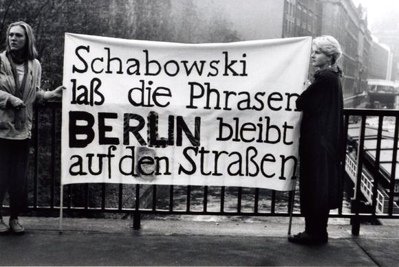 Banner, "Stop the platitudes Schabowski. Berlin is staying on the street"