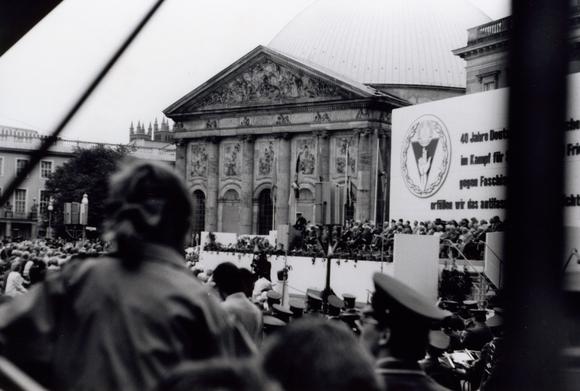 40 Jahre Deut[sche Demokratische Republik] / im Kampf für [...] Fri[...] / gegen Faschis[mus] / erfüllen wir das antifas[...]