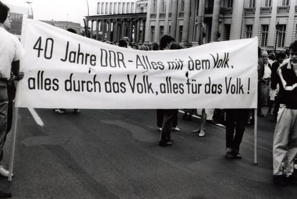 Banner, "40th anniversary of the GDR - doing everything with the people, through the people and for the people!""