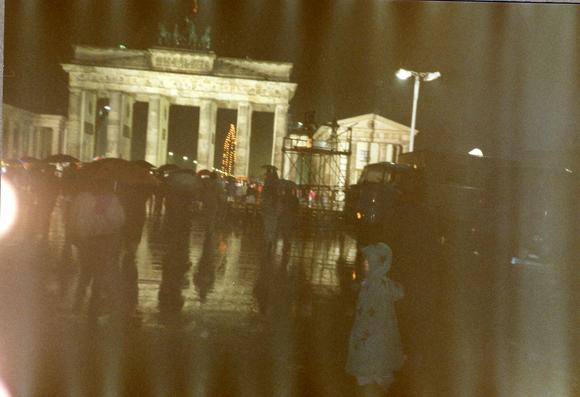 People at Brandenburg Gate border crossing, festively opened on December 22, 1989. The opening ceremony was carried out by Helmut Kohl and the East German premier, Hans Modrow, and attracted more than 100,000 onlookers and hundreds of camera teams.