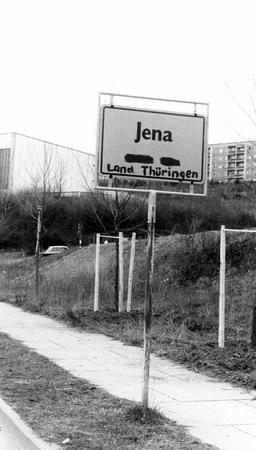 Die Angabe "Bezirk Gera" wurde übermalt und von Hand ersetzt durch "Land Thüringen".