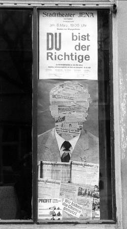 Stadttheater Jena / im Capitol / Sondergastspiel / am 6. März, 19.00 Uhr / Gustav von Wangenheim / Du / bist / der / Richtige / Ein Musteragitpropstück aus den 50er Jahren / linientreu, nationalpreisgekrönt, mit allem, was dazu gehört als da sind:/ [...]