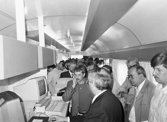 "On the Mannesmann-Kienzle Exhibit Train in Leipzig"