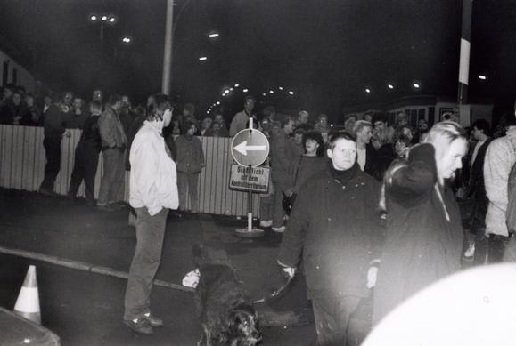 Bei der Öffnung des Grenzübergangs Bornholmer Straße, während der Zeit der Mauer einer der sieben Straßenübergänge zwischen Ost- und West-Berlin (zwischen sowjetischem und französischem Sektor); der Grenzübergang Bornholmer Straße war in der Nacht vom 9. zum 10. November 1989 der erste, an dem die Passkontrollen zeitweise eingestellt wurden.
