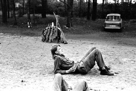 "Anlass: GST-Lager der 11. Klasse der EOS "Friedrich List", Berlin-Pankow. Kommentar: nach der Sturmbahn - völlig fertig"