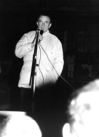 Und dann verkündete Pfarrer Erich Kranz kurz nach 19.00 Uhr auf dem Platz der Demokratie, dass sich die Volkskammer der DDR aufgelöst habe. Diese Nachricht wurde von den Massen unter stürmischen Jubel aufgenommen." (Klaus Bergmann: Weimar-Demos 1989/90 in Bildern. Weimar 1992, S. 12)