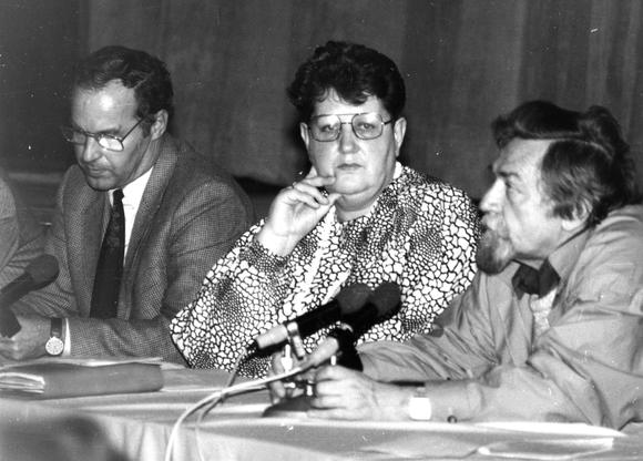 "Über zweitausend im Saal und viele noch auf dem Vorplatz verfolgen am 26. Oktober 1989 die leidenschaftliche Diskussion. Vertreter des Rates der Stadt Weimar und des Bezirks Erfurt räumen Fehler ein, geben notwendige Verbesserungen zu. Der „Sozialismus“ aber bleibe die Perspektive. In klugen und gewandten Reden erwidern Bürger den Vertretern von Partei und Staat." (Quelle: Victor, Christoph: Oktoberfrühling. Die Wende in Weimar. Weimar, 1992, S. 170)