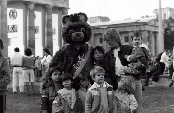 Ausstellungsthema: Die deutsche Einheit: Kinder mit Berliner Bär-Maskottchen [19/21]