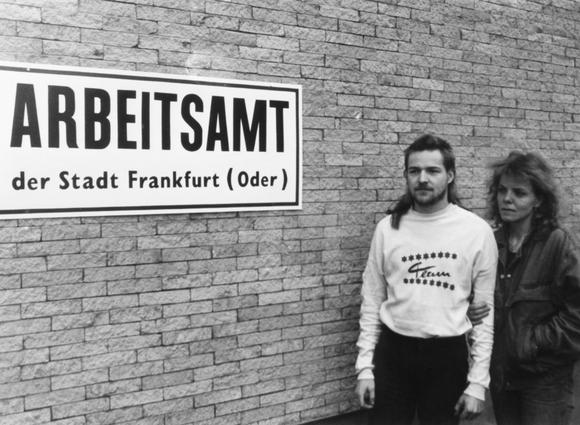 Paar vor dem im Rahmen der Wirtschaftsunion neu eingerichteten Arbeitsamt