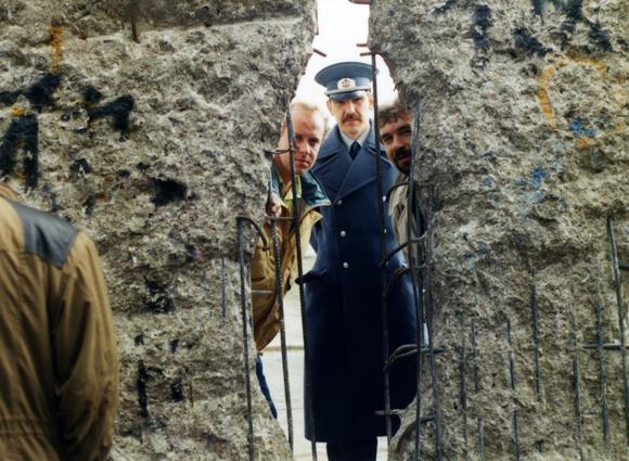 "Zwei Kollegen von mir, die (zusammen mit einem Volkspolizisten) von Ost nach West schauen."