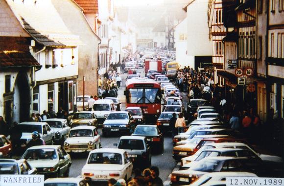 Traffic in Wanfried on the day of the border opening between Katharinenberg and Wanfried